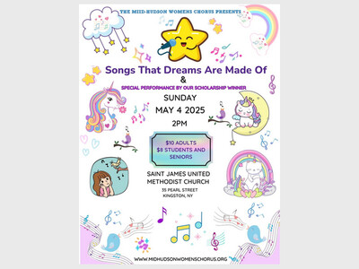 Nanuet event Sun May 4 2:00 pm Mid-Hudson Women's Chorus Spring Concert The Mid-Hudson Women's Chorus proudly presents its family friendly spring concert: "Songs That Dreams Are Made Of" There Ruth Mandelbaum Hudson Valley News & Events
