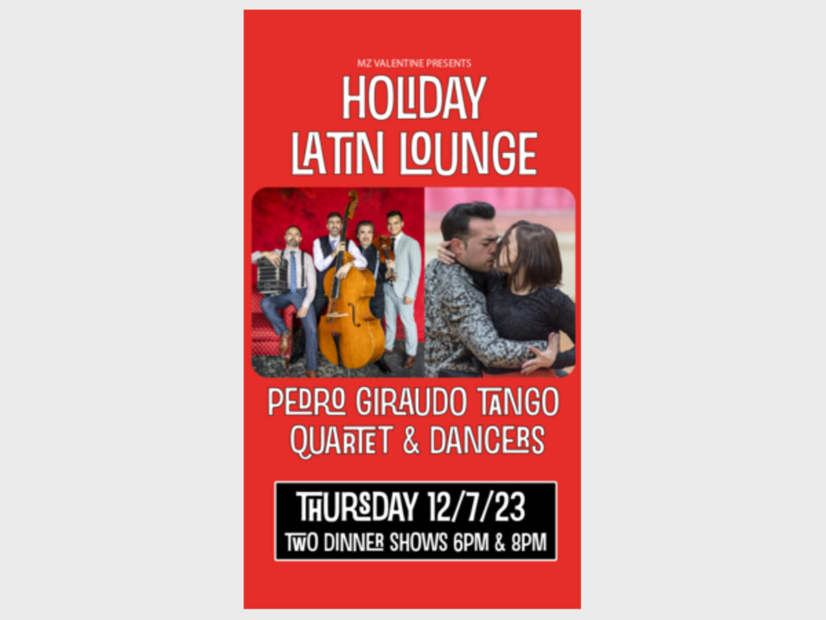 Dance and join the fun at Mz Valentine's Latin Lounge with live music great food and drinks in an elegant sophisticated atmosphere. Shows at 6pm and 8pm Thursday December 7th