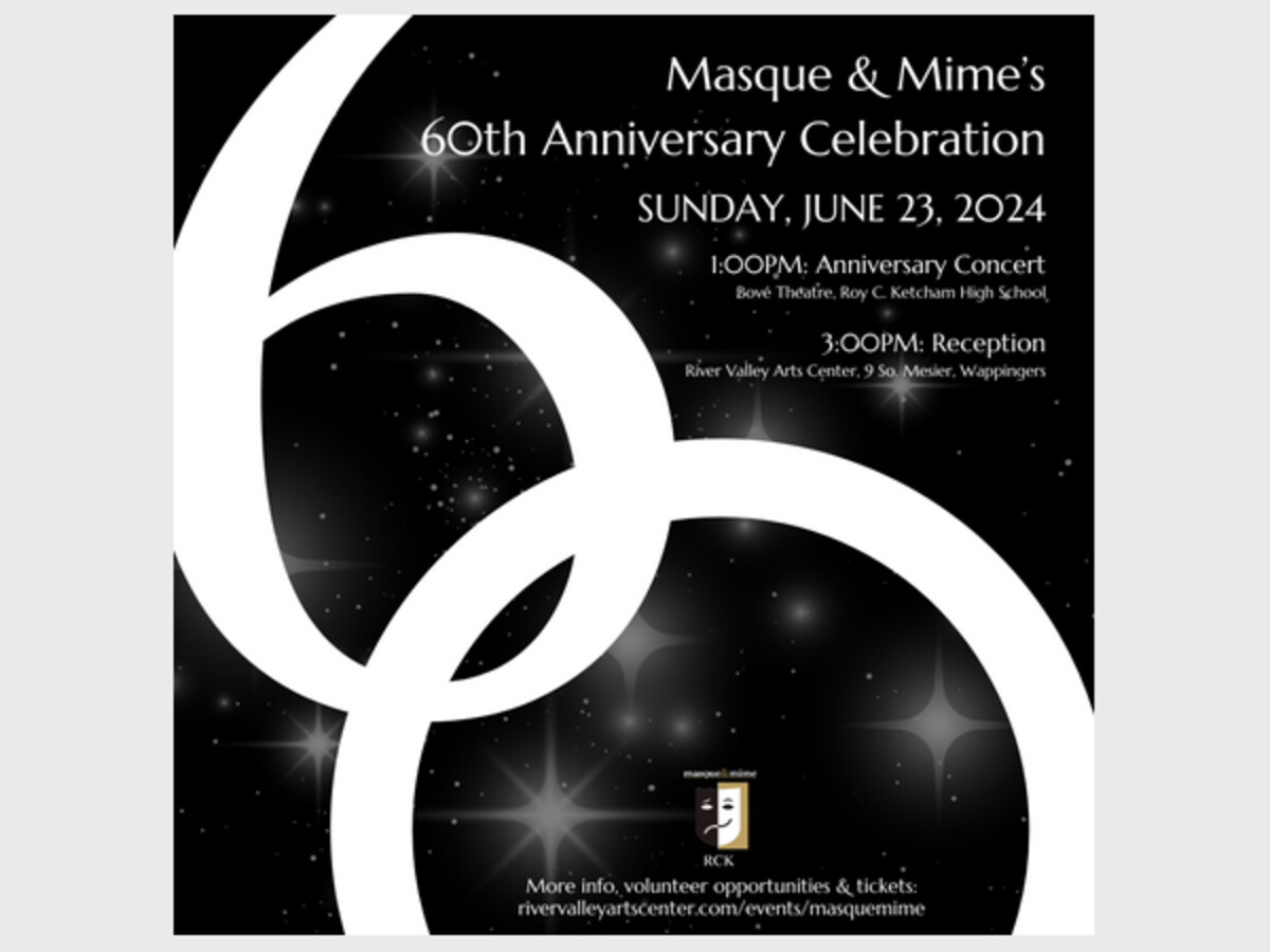 Alumni of Roy C. Ketcham’s (RCK) drama club, The Masque & Mime Society, are pleased to invite the public to join them for a celebration of the club’s 60th anniversary on Sunday, June 23. The ticketed event will kick off with an anniversary concert at 1 p.m. at RCK’s Bové Theatre, followed by a reception at River Valley Arts Center in Wappingers Falls at 3 p.m.