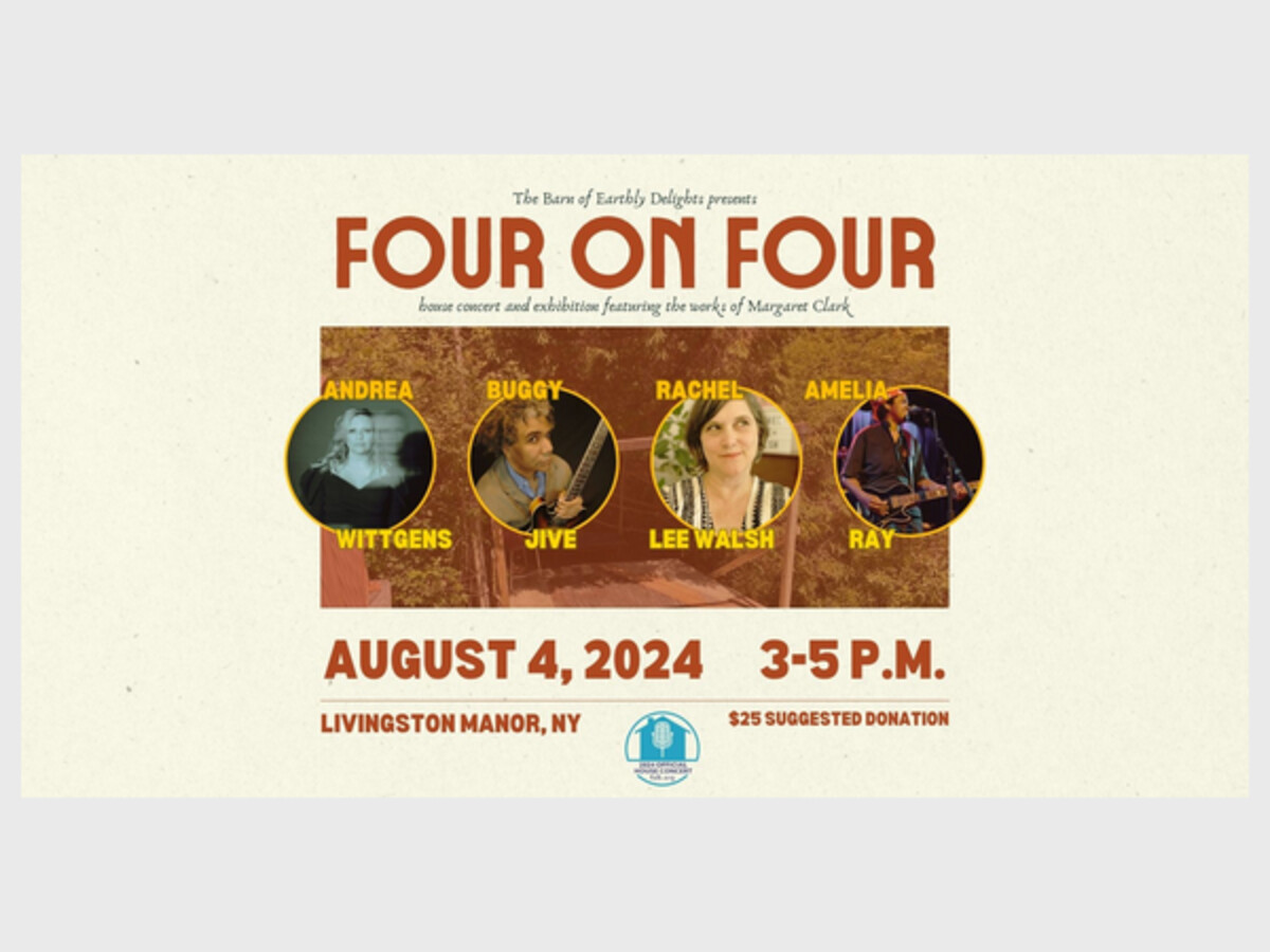 Welcome to the Barn of Earthly Delights for an afternoon of art, communion and music with performances by Buggy Jive, Rachel Lee Walsh, Amelia Ray and Andrea Wittgens, and painting exhibit featuring the works of Margaret Clark.