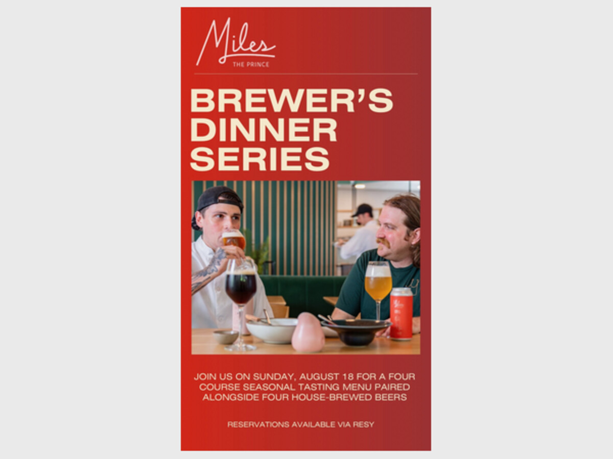 Brewer’s Dinner Series at Miles, The Prince August 18th