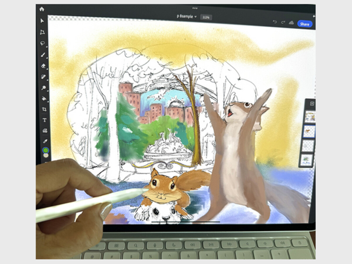This program is perfect for all ages! Join Betsy Franco-Feeney on a journey from character studies to finished picture book. Watch her painting on her iPad with Photoshop.