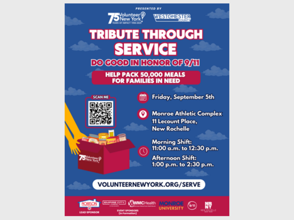 This year’s events begin on Friday, September 5 with a meal-packing event at Monroe University in New Rochelle, where hundreds of volunteers will prepare 50,000 meals for local families in need.