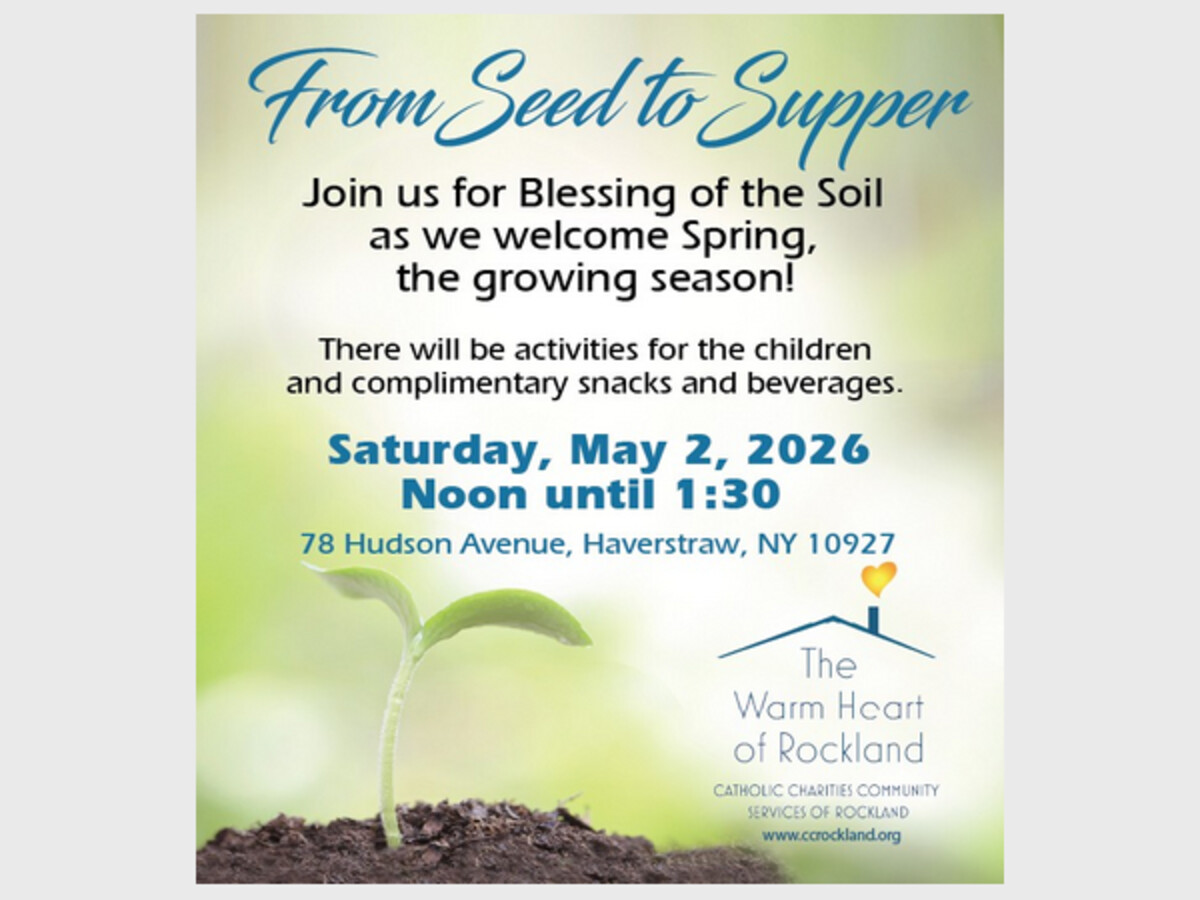 Catholic Charities Community Services of Rockland will host its annual Blessing of the Soil at 78 Hudson Avenue, Haverstraw. The event includes a ceremonial blessing to mark the growing season, along with children's activities and refreshments. The garden supports the organization's food pantry, helping provide fresh produce to the community.