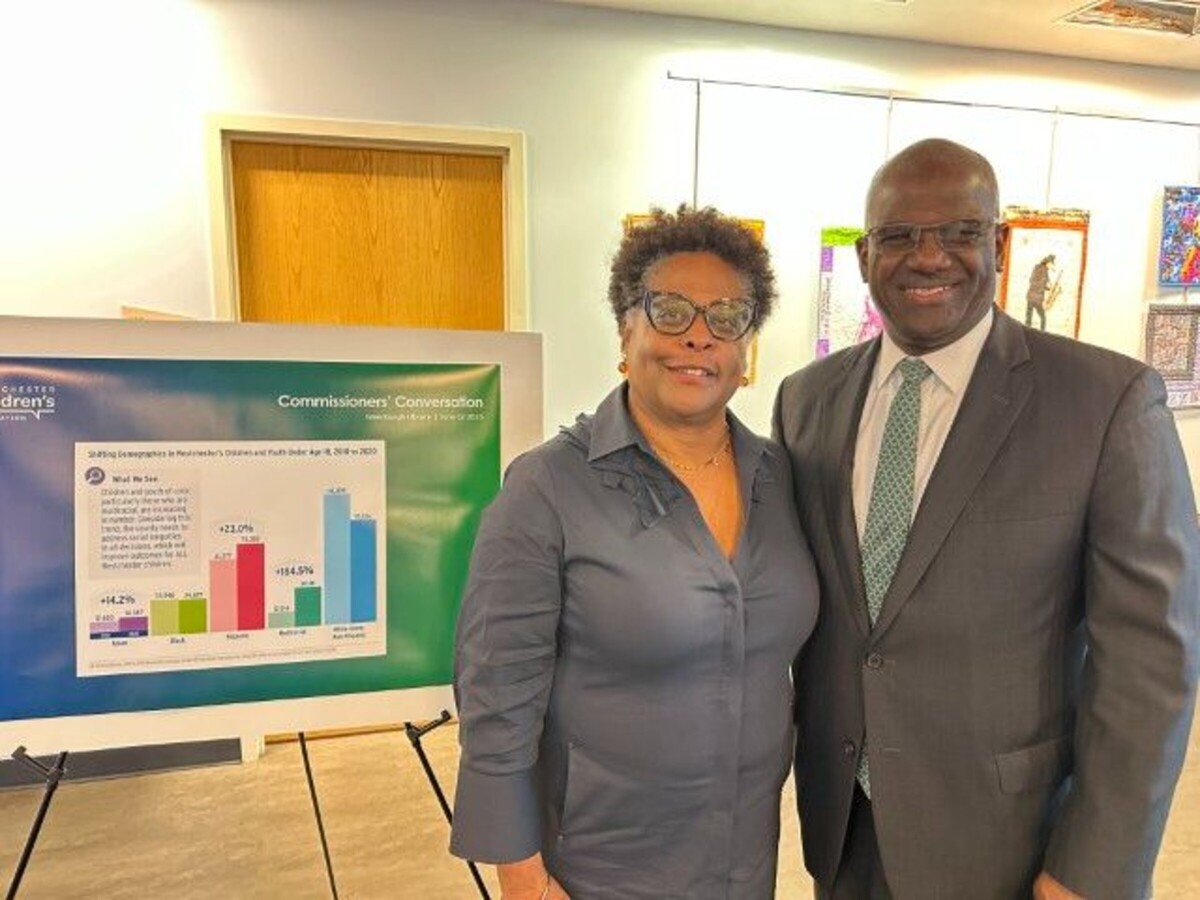 The Commissioners’ Conversation brought together Westchester County officials to share updates, insights, and strategies for addressing the challenges facing children, youth, and young adults. The panelists were Dr. Sherlita Amler, M.D., M.S. Commissioner of Health, Rachel Kotzur, Assistant Commissioner of Probation, Leonard Townes Commissioner of Social Services, Lisette Matos Deputy Commissioner of Social Services, Ernest McFadden Executive Director, Youth Bureau, Elizabeth Oliveto Program Administrator, Westchester-Putnam Career Center Network, and Michael Orth Commissioner of Community Mental Health.