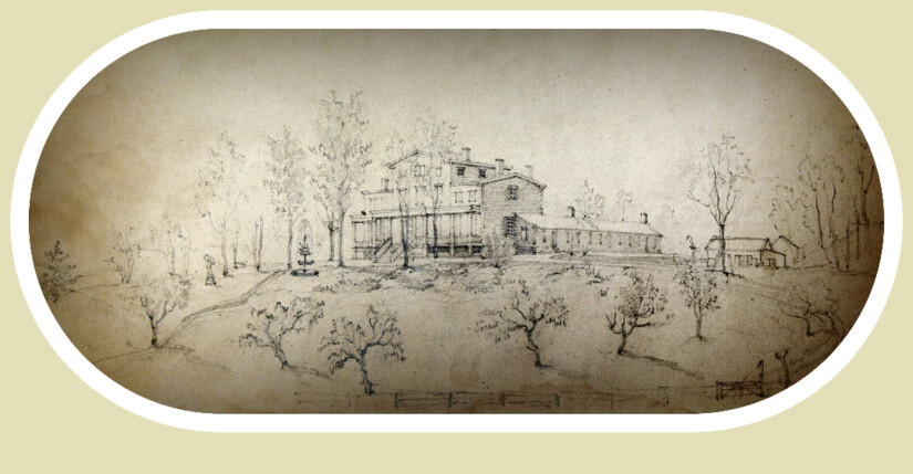 Jasper Cropsey's detailed graphite drawing of the house hangs in Harmony Hall. Contributed photoFamed Hudson River school painter Jasper Cropsey was a friend of Jacob Sloat and gifted the family with a detailed graphite drawing of the house.