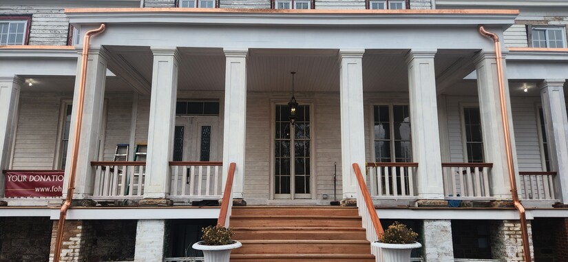 The porch restoration at the 1848 Greek Revival home marks 20 years of fundraising by the not-for-profit Friends of Harmony Hall.