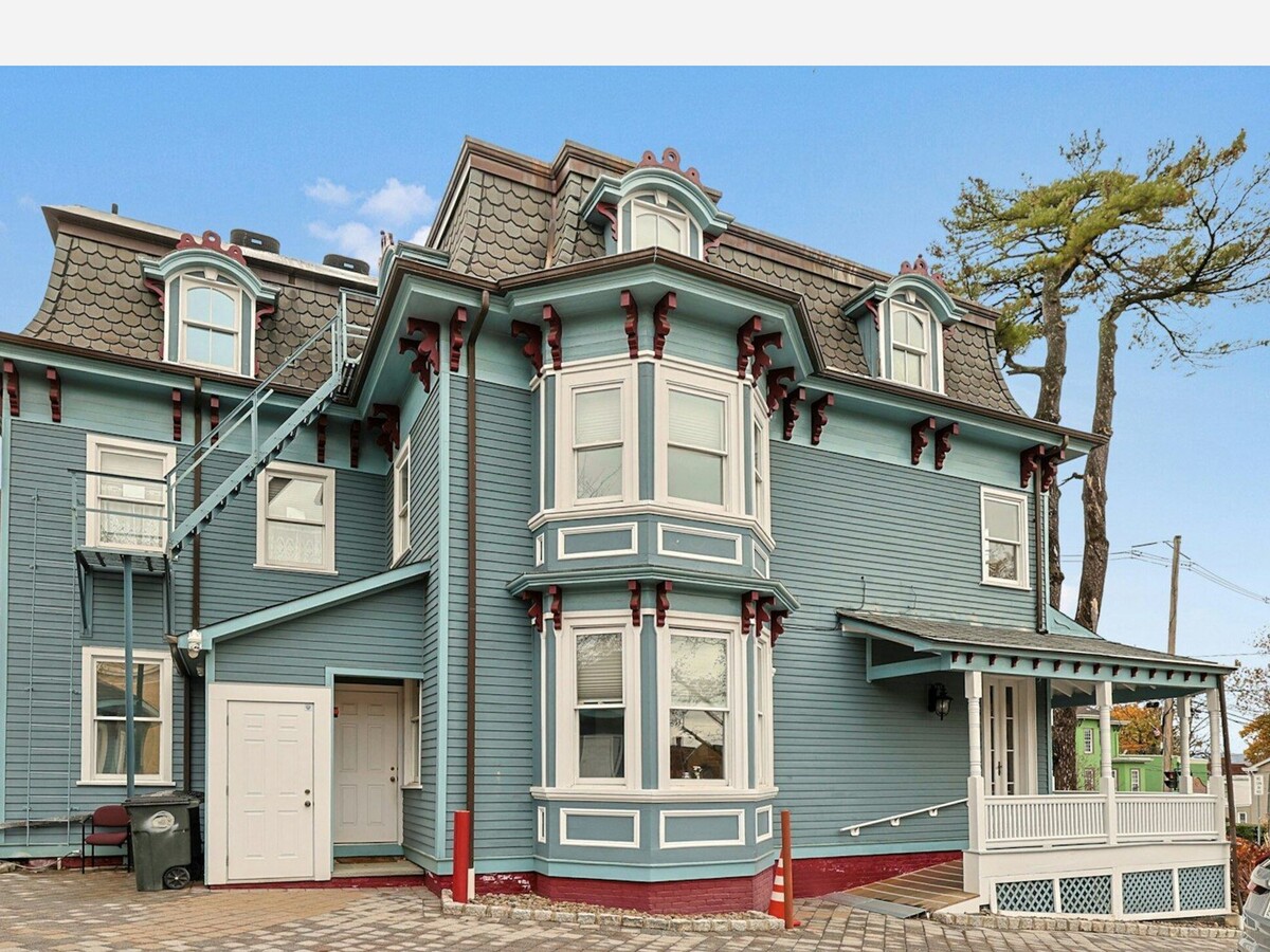 A plaque details the history of this Victorian home in Nyack. Photo: Jump VisualsCouch Court, with its blue façade, turret and rocking-chair front porch, spans approximately 6,000 square feet. The ground-floor commercial space features five rooms, a fireplace, two half bathrooms, high ceilings and hardwood floors. The second floor includes four rooms and a full bath.