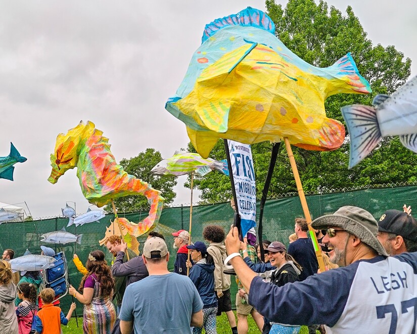 Roaming performances from Arm of the Sea with puppets and puppeteers from the Jim Henson Studios, New Vaudevillain (stilts and magic), and Nate the Great (music and juggling) will pop up throughout the day. The Riverkeeper Boat Flotilla's appearance honors the Hudson River,