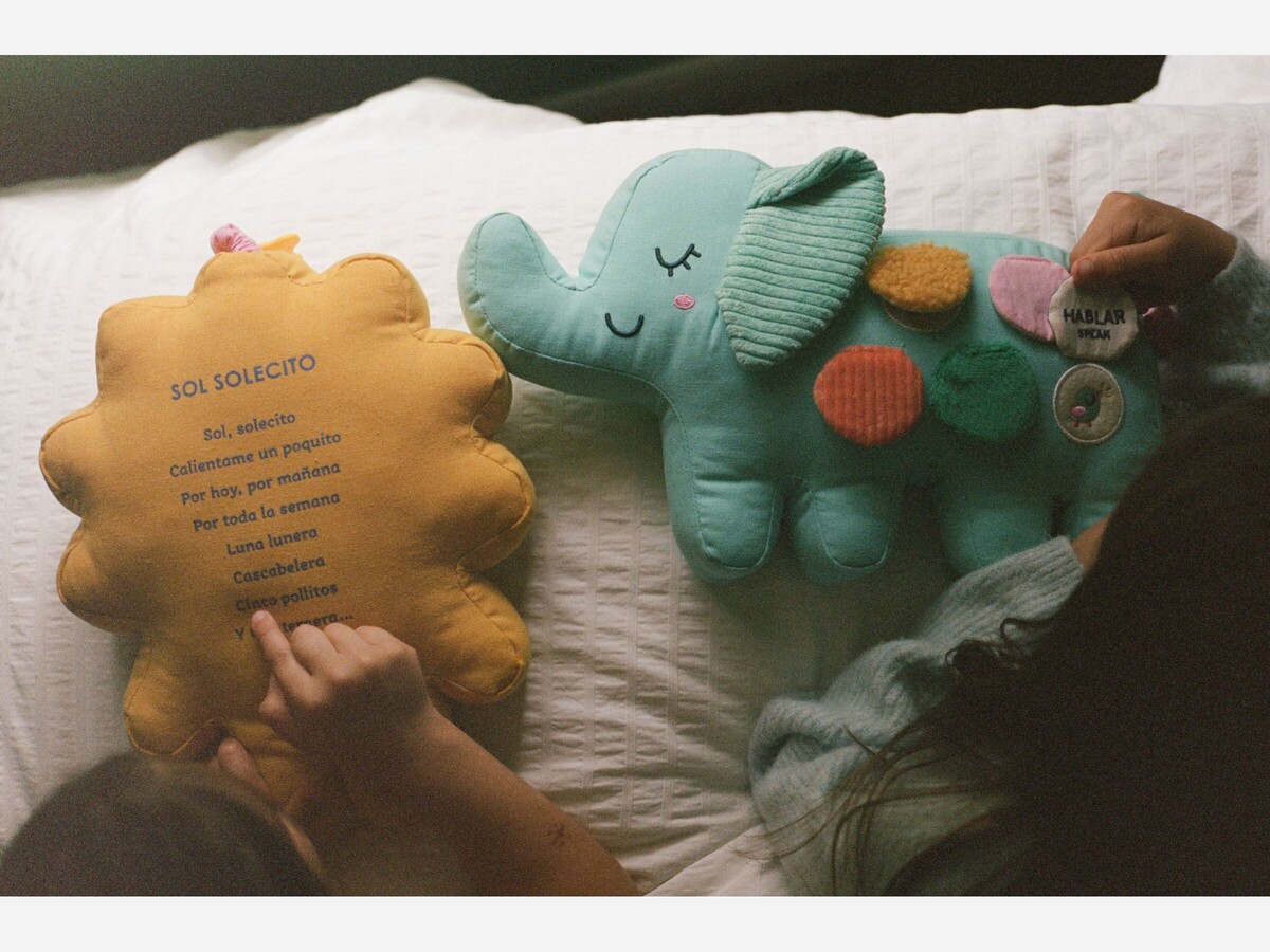 Birdsong’s first collection includes plush toys that introduce early concepts like counting, verbs, and storytelling in both English and Spanish, helping babies build early language familiarity through interactive play.