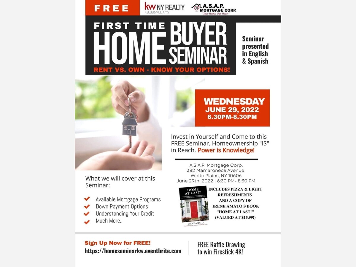 This is a MUST attend for anyone thinking to purchase a home for the first time and wants to learn about what loan programs and incentives that are available to them in today’s marketplace. Serious buyers should have their pre-qualification letter from a lender ready to present with their offer. Join Maria Borea Puccella and I along with Industry expert Irene Amato, CEO of ASAP Mortgage Corp and Amazon’s Best selling author of “Home at Last” at this FREE and INFORMATIVE home buying seminar. Knowledge is Power! Sign up Now!